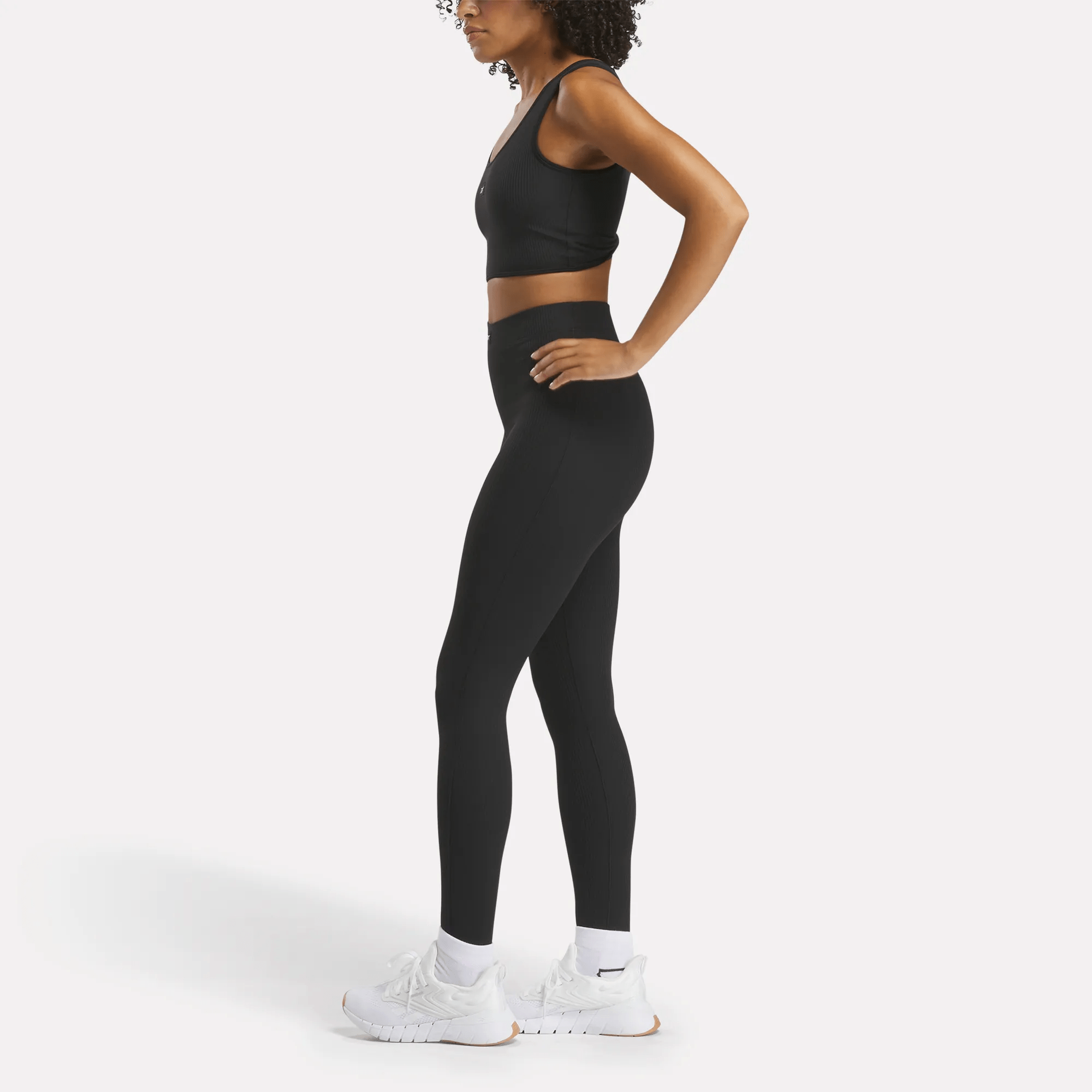 Inspired by classic dance wear. these women’s Reebok stirrup leggings are just right for studio classes. Soft rib knit fabric makes them extra cozy. A high-rise waist provides full coverage. and the stirrups keep the legs in place as you move.
